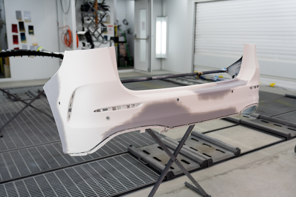 牛島さん(以下、牛島):塗装作業は、いきなり色を吹くところから始まるわけではありません。まず、板金工程を終えたパネルが塗装工程へと引き渡されますが、塗装の前に下準備が必要になります。ヤスリで表面を整え、パテの上にサフェーサーと呼ばれる下地塗料を吹く。
