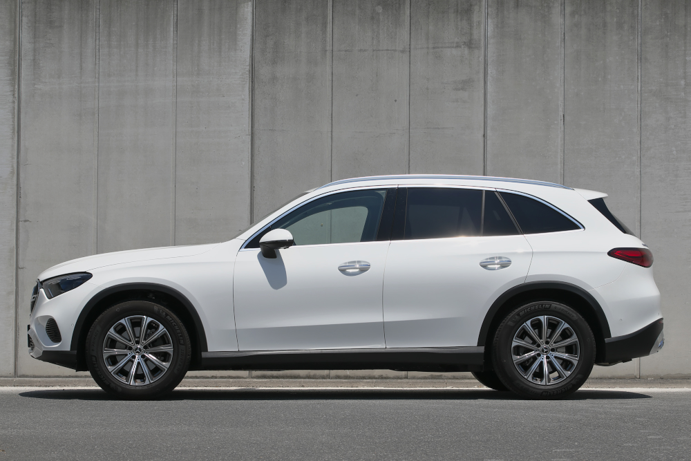 ▲GLC220d 4MATIC Core ISGのサイドビュー。18インチタイヤが標準装備