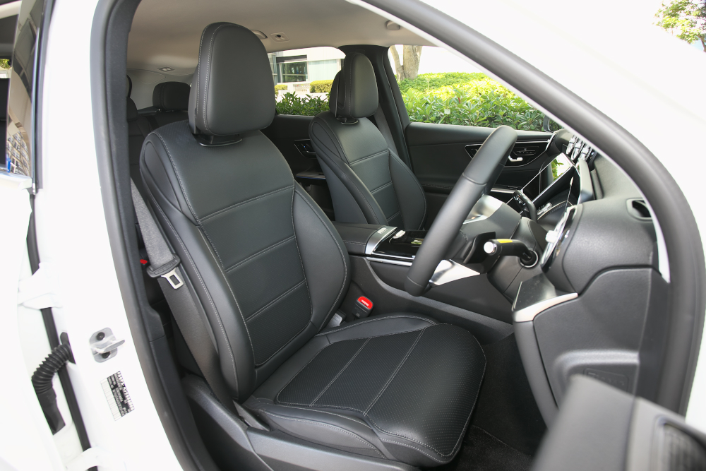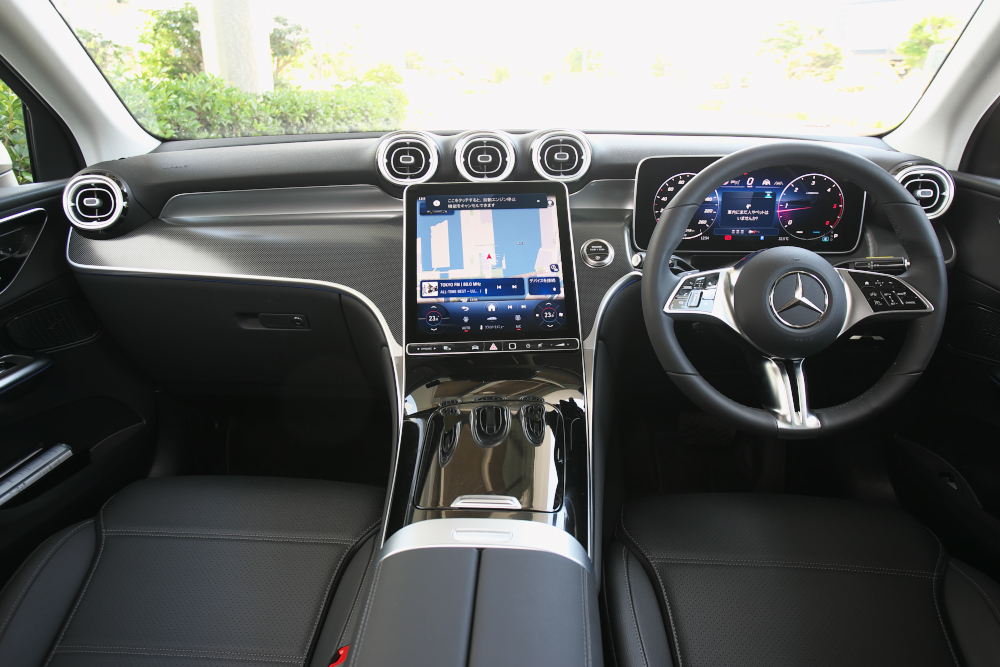 インテリアは、メンテナンスが簡単で本革のような質感が楽しめるレザーARTICOを採用。標準色のブラックに加えて、オプションのAMGラインパッケージにはネバグレー/ブラックも設定されています。標準仕様はシルバーグレーダイヤモンドインテリアトリムを採用。AMGラインパッケージでは、メタルウィーブインテリアトリムをGLCとして初採用し、スポーティさに磨きを掛けています。