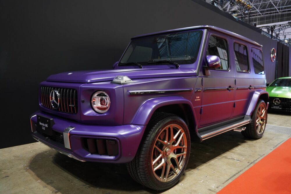 こちらは近日導入予定の有償オプション「MANUFAKTUR プログラム」を採用した「メルセデスAMG G 63(ISG)」。MANUFAKTURとは、ドイツ語で“製造・制作”を意味し、細部までカスタマイズできる特別なプログラムです。Gクラスならではの重厚感に、MANUFAKTURならではの上質な遊び心が加わった1台に仕上がっていました。