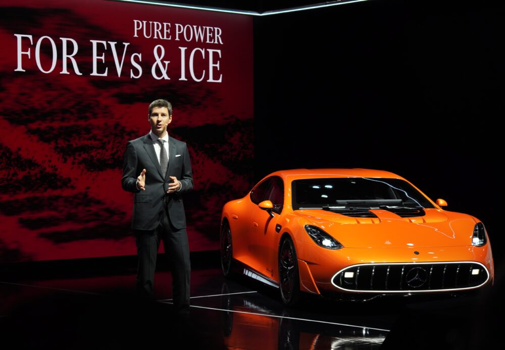 プレゼンテーションでは、「AMGが電動化の時代にも“走りの情熱”を失わないことを証明する、耐久性能と感情を両立した電動ハイパフォーマンスカー」として紹介されました。