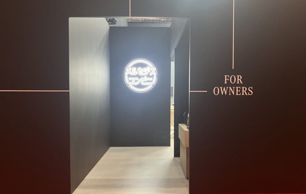 この「メルセデス コンビニ」は、メルセデス・ベンツのオーナー限定で利用できる特別な空間。入口でキーを提示すると入店でき、中ではコーヒーや軽食を楽しめるそうです。私たちもリベンジするしかない!
