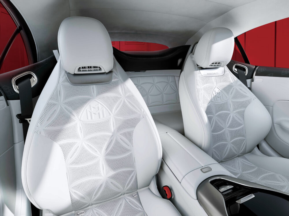 シートにはMaybachエンブレムをモチーフにした専用のフローラルパターン刺繍が施されています。中央にはエンボス加工のMaybachエンブレムを配置。オーナーはドアを開けるたびにラグジュアリーな雰囲気を堪能できるはずです。