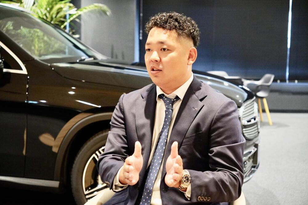 ▲メルセデス・ベンツ中野 セールススタッフ 池田大輝氏。MB国際認定セールスエグゼクティブ
