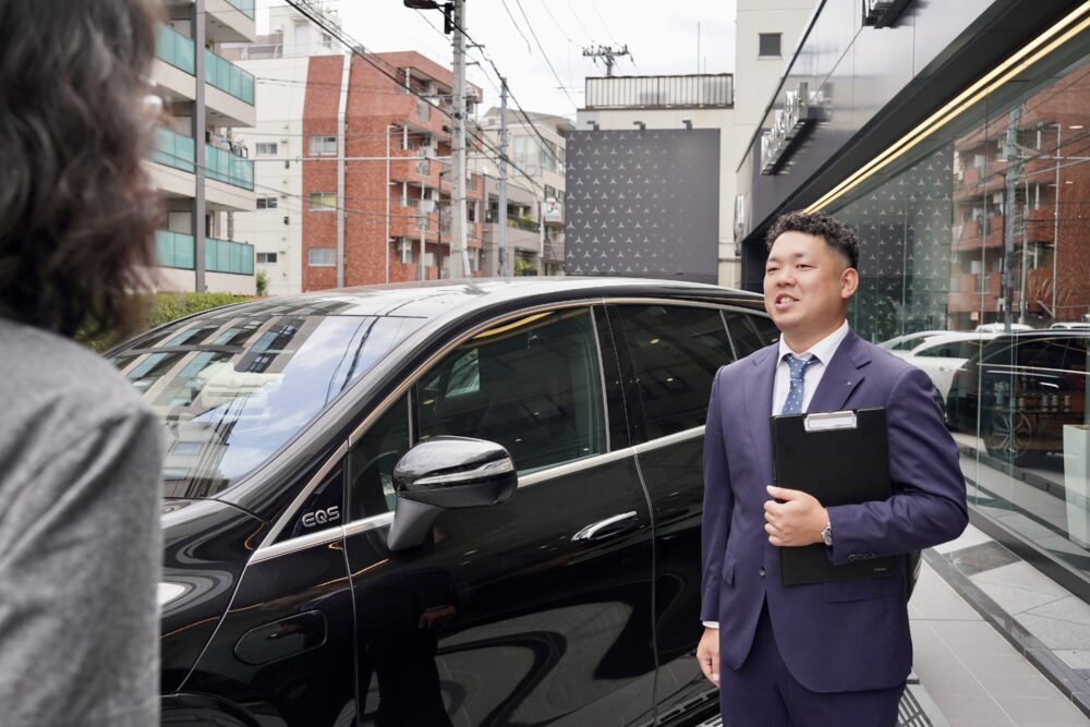 「もちろん私たちセールスはメルセデス・ベンツのクルマを販売することが仕事ですから、試乗いただくお客様に乗り換えの予定や比較検討しているクルマがあるかなどをおうかがいします。でも強引に販売することはありませんのでご安心ください。まずは実際に乗っていただき、メルセデス・ベンツの魅力を体験していただけたらと思っています」と話すのは、メルセデス・ベンツ中野でセールスを担当する池田大輝さん。